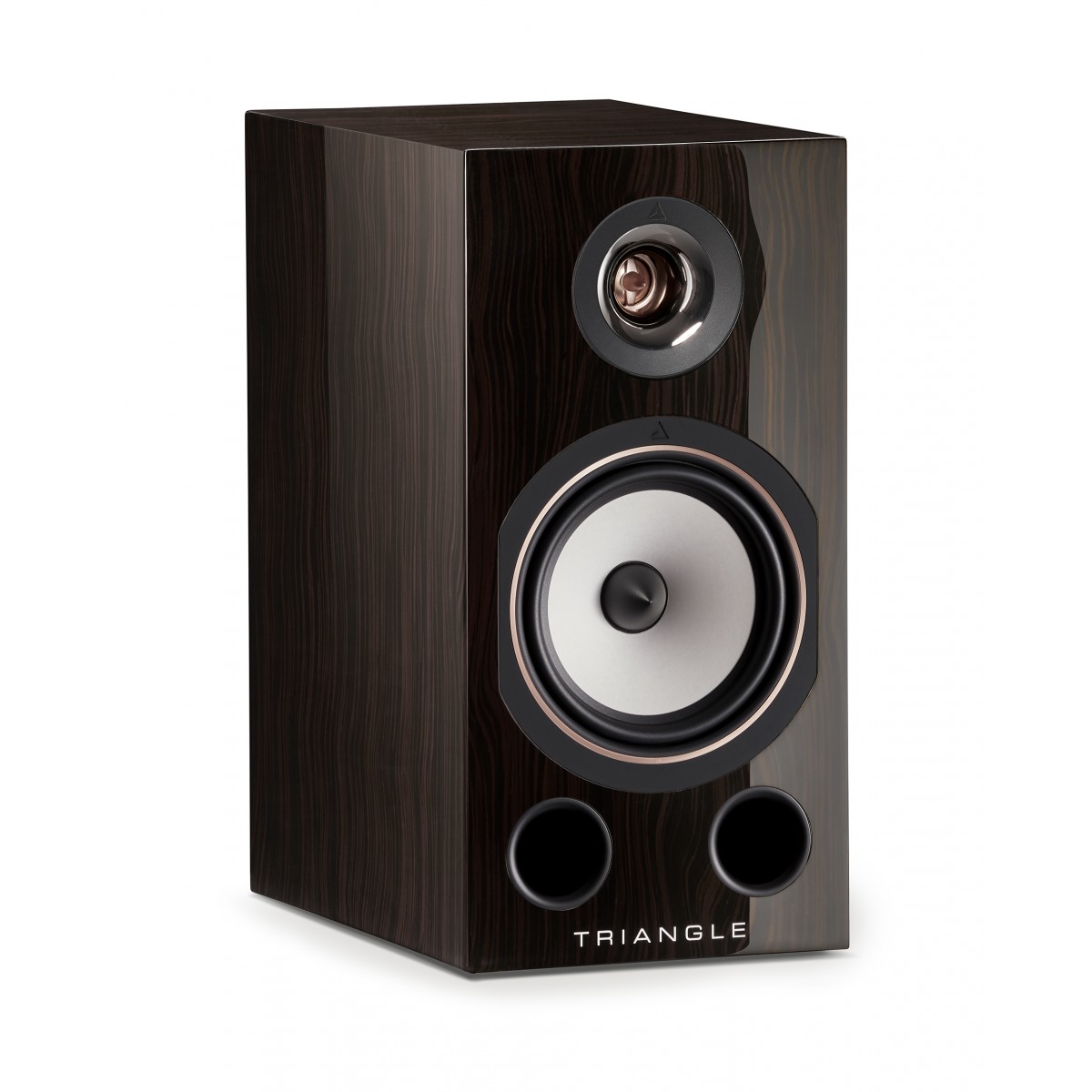 Beskrivelse Comète 40th er en kompakt gledesspreder av en høyttaler med en fenomenal lydgjengivelse. Comète 40 er påkostet fra innsiden og ut: påkostet delefilter, god internkabling, heftige elementer og et rålekkert kabinett laget av førsteklasses materialer. Dette er en kommende klassiker blant stativhøyttalere for den ekte hi-fi entusiasten som vet hva god lydkvalitet handler om. Audiophile.no skriver dette om Comète 40th: "Comète 40th har imponert meg stort med en utsøkt lydgjengivelse gjennom hele frekvensområdet, og er ikke mindre imponerende i øvelsene dynamikk og perspektiv." Spesifikasjoner: Type høyttaler: Bokhylle/stativ Konstruksjon: 2-veis Sensitivitet (dB/W/m): 90 Frekvensområde (+/- 3dB Hz-kHz): 49 - 22 Power handling (W Rms): 80 MIN./MAX. IMPEDANCE (ohms) 4,2 / 8? Finisher: Blond Sycamore og Santos Rosewood Størrelse (WxDxH): 200 x 324 x 400 mm Vekt per høyttaler: 8,8 KG Triangle feirer sine første 40 år og relanserer to modeller som har vært med fra merket i en mannsalder: Comète 40th og Antal 40th. Begge modellene har fått en nyutviklet diskantdriver av magnesiumlegering. Comète 40th har en nyutviklet papirbasert bass/ mellomtone-enhet, som igjen brukes som dedikert mellomtone enhet i Antal 40th. Antal 40th har i tillegg to solide nyutviklede bassdrivere basert på en kompositt bestående av papir og karbonfiber og som har et meget kraftig magnetsystem. Her er det snakk om betydelige oppgraderinger fra standardmodellene! Begge modeller kommer i to nye finisher, Santos og Sycamore. Santos er en lekker mørkebrun finish som er høyglanslakkert. Sycamore (på norsk platanlønnetre) er lettere i stilen og er en lys satinlakkert finish som kler ethvert stilsikkert skandinavisk hjem. Begge modeller har tidsriktige detaljer i rosegull. Begge finisher er basert på førsteklasses trefiner og er et resultat av solid håndverk. Driverne i de to modellene er montert ved Triangle sin fabrikk i Soissons utenfor Paris. Da Triangle ble etablert i 1980 av Renaud De Vergnette så var ønsket hans å gjengi lyden på en dynamisk måte og med stor grad av realisme. Antal og Comète 40th har en rekke forbedringer som sikrer dette. De har bedre oppløsning, tightere lyd og ikke minst et større lydbilde enn standardmodellene. Først og fremst skyldes dette bedre elementer, kombinert med et mer påkostet delefilter, bedre internkabling og oppgraderte terminaler for høyttalerkablene. I tillegg har det blitt brukt samme solide MDF-kvalitet som i toppseriene Signature og Magellan, kabinettene har en ekstrem kvalitet til denne prisen. 40th modellene er kommende klassikere! Til Comète er det også lansert et matchende stativ S04 40th som har de samme designelementene som er på høyttalerne. I 40th modellene er diskantene levert med en nyutviklet dome i rosegull anodisert magnesium. Dette elementet gir en meget høy respons, kontrollert forvrengning og en helt eksepsjonell spredning. Magnesium kombinerer to ønskede egenskaper: lav egenvekt og høy stivhet. Domen er designet for å lette jobben til spolen, noe som sikrer en jevn og ensartet justering og derfor også bedre tilpasning i produksjonen slik at får drivere med konsistente egenskaper. Bass/mellomtonemembran i cellulosepapir For mest mulig naturtro gjengivelse av vokal og stemmer er det brukt membran i bass/ mellomtone-enheten av cellulosepapir. Helt siden starten har Triangle brukt dette materialet i sine enheter. Dette materialet sørger for en presis og liveaktig reproduksjon av vokalen. Opphenget til membranet har en fleksibel flens som gir mulighet for stor vandring på driveren, noe som øker presisjonen og lydtrykket til elementet. Magnetsystemet og spolen er solid dimensjonert og gjør det mulig å oppnå realistiske lydtrykk. I tråd med arven og med ønsket om kontinuerlig forbedring har R&D-teamet utviklet et nytt materiale i 100% cellulosepapir. Det er en papirfiber uten overflatebehandling som gir en naturtro og ufarget lyd. I tillegg har begge 40th modellene en ny kon-profil på membranen, som øker frekvensresponsen i de lavere oktavene. Ved å kunne gjengi signalet mer lineært begrenser en bruken av komponenter i delefilteret som kan forstyrre lyden. Nøye utvalgte komponenter For å sikre en best mulig overføring av musikksignalet er 40th modellene utstyrt med high-end kabling inspirert av Signature-serien. Kabelen kombinerer to isolerte kobberledere som sikrer en jevn gjengivelse over hele frekvensområdet. Kabelen har PVC isolasjon som minsker elektromagnetiske forstyrrelser. Lederne er i oksygenfritt kobber - kjent for gode lederevner og nøyaktig lyggjengivelse. Delefilterdesignet ivaretar en balansert lydgjengivelse. Hver komponent er nøye utvalgt, være seg spolene, MET kondensatorene eller de keramiske motstandene. I Antal 40th er det brukt et 2. ordens low pass filter på bassene med en delefrekvens oppover på 185Hz. Det er videre et 2. ordens filter på mellomtonen som med øvre delefrekvens til diskanten på 3,9KHz. Diskanten er filtrert øverst i et 4. ordens filter, noe som er gjort fordi horndiskanter krever denne løsningen for optimalt resultat. På Comète 40th er det brukt et 2. ordens fiter på bassen som er koblet til et 4. ordens filter på diskanten med en delefrekvens på 4KHz. 40th tilkoblingsterminaler Terminalene på 40th modellene er i rosegull anodisert børstet aluminium. De spesialdesignede terminalene kan kobles med 5 kvadratmillimeters høyttalerkabler. De tar selvfølgelig også bananplugger og spader. Comète 40th har singelwiring. Fremragende kabinetter Kabinettene består av finért MDF. I jakten på et mest mulig nøytralt kabinett uten egenresonans ble det valgt MDF med meget høy tetthet på hele 800kg pr kubikkmeter. Dette er den samme kvaliteten som toppmodellene i Signature og Magellan serien bruker. Veggtykkelsen er mellom 20 og 23mm. Kabinettene får finér utenpå MDF-platene, og deretter blir det overflatebehandlet med klarlakk på Santos-finéren